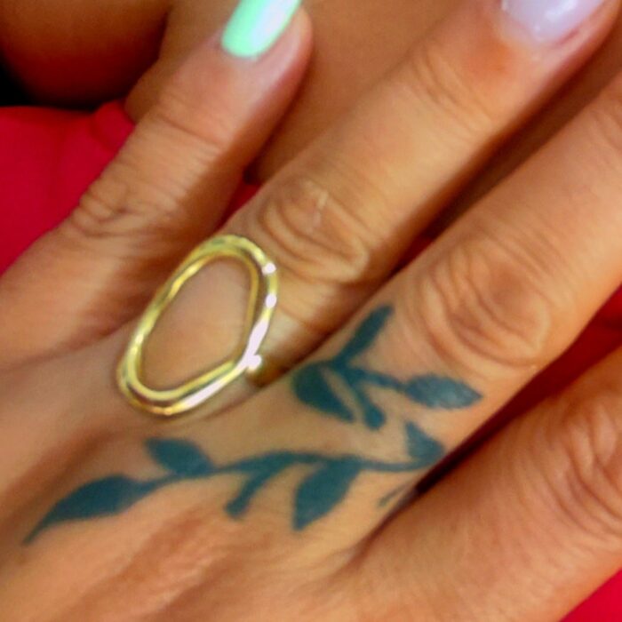 Steel ring with oval shape open in the hoop to adapt to all sizes. Available in gold and silver acro.